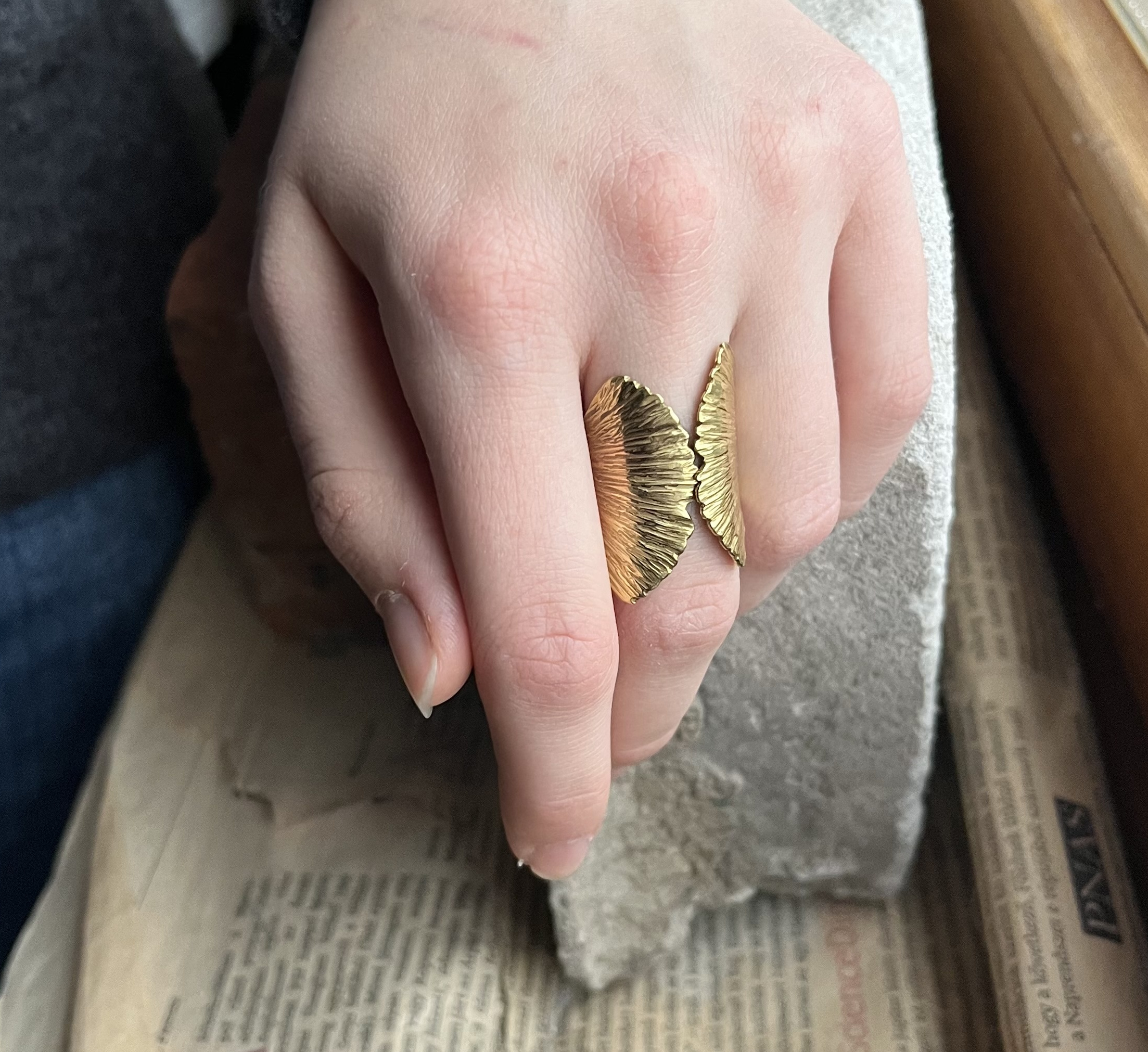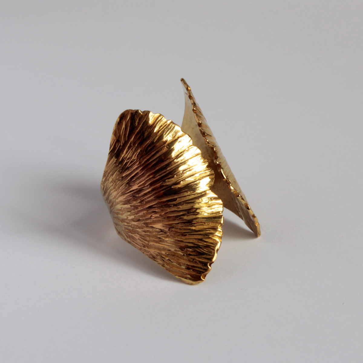 Gingkolevél gyűrű sárgarézből