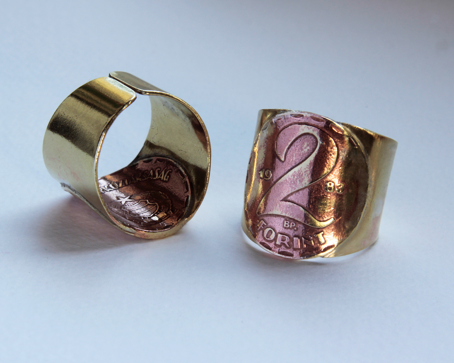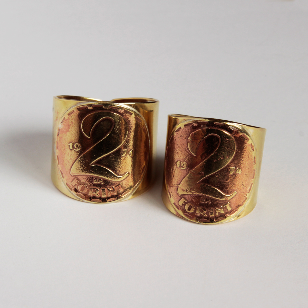 Ikonikus érméből, ikonikus gyűrű. Eredeti kétforintos felhasználásával készített állítható gyűrű. Ezt a fajta kétforintos érmét 1970 és 1989 között adták ki, így az ebbe az intervallumba eső évszámokkal tudom elkészíteni. Adott évszám beszerzéséért mindent elkövetek, de felszámolok plusz 5000 forintot. Rendelésre készítem, melynek ideje 2-3 hét.