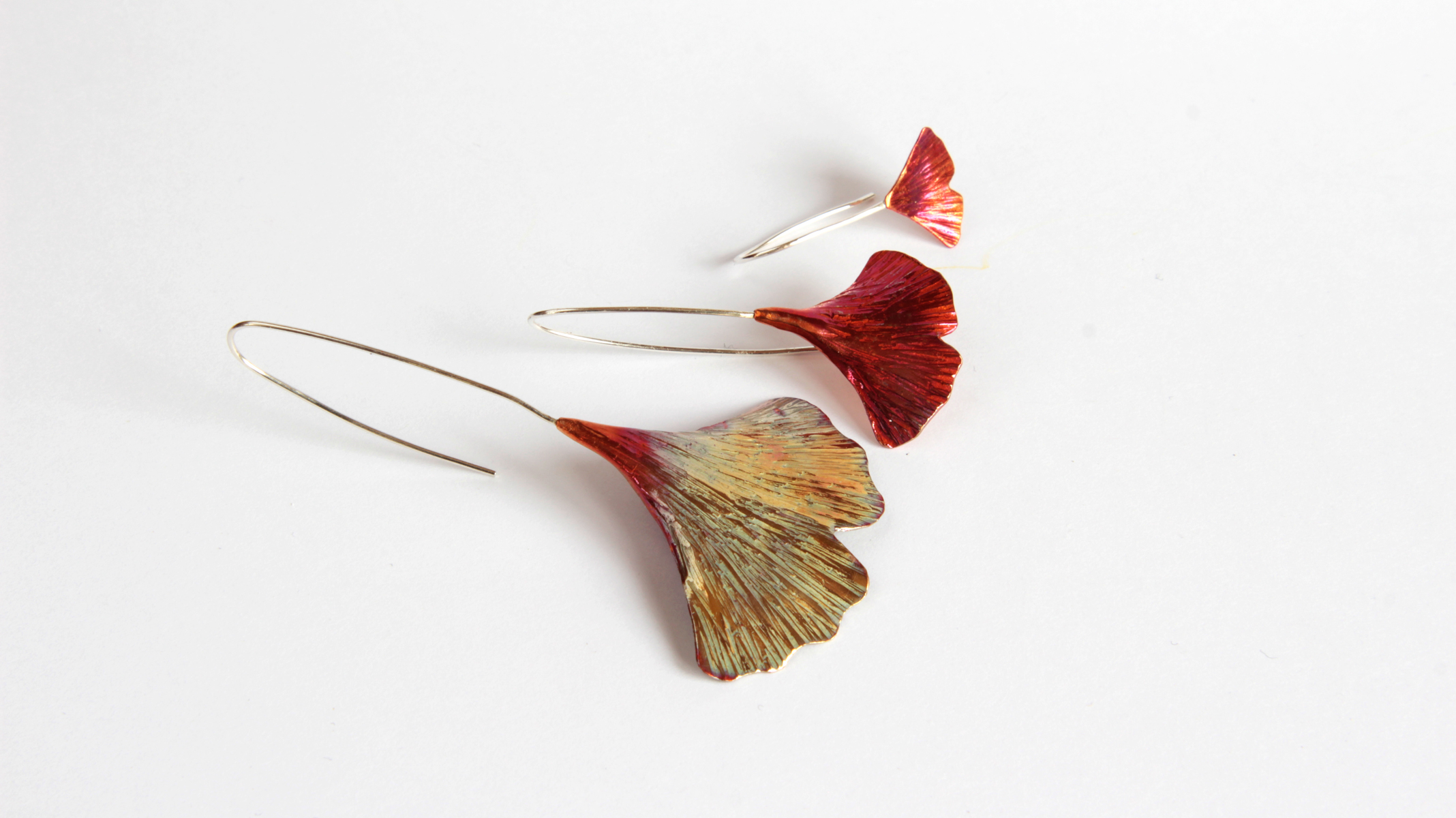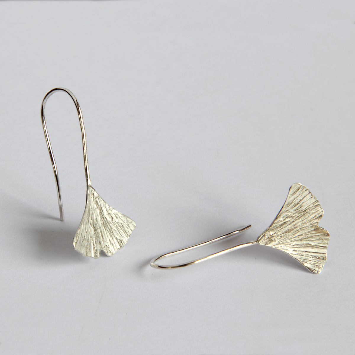 A ginkgolevél a hosszú élet szimbóluma. Ez a csinos kis fülbevaló minden alkalomra ideális viselet. Kalapált és reszelt levélkével díszített fülbevaló. Anyaga: ezüst. Hossza: 25 mm