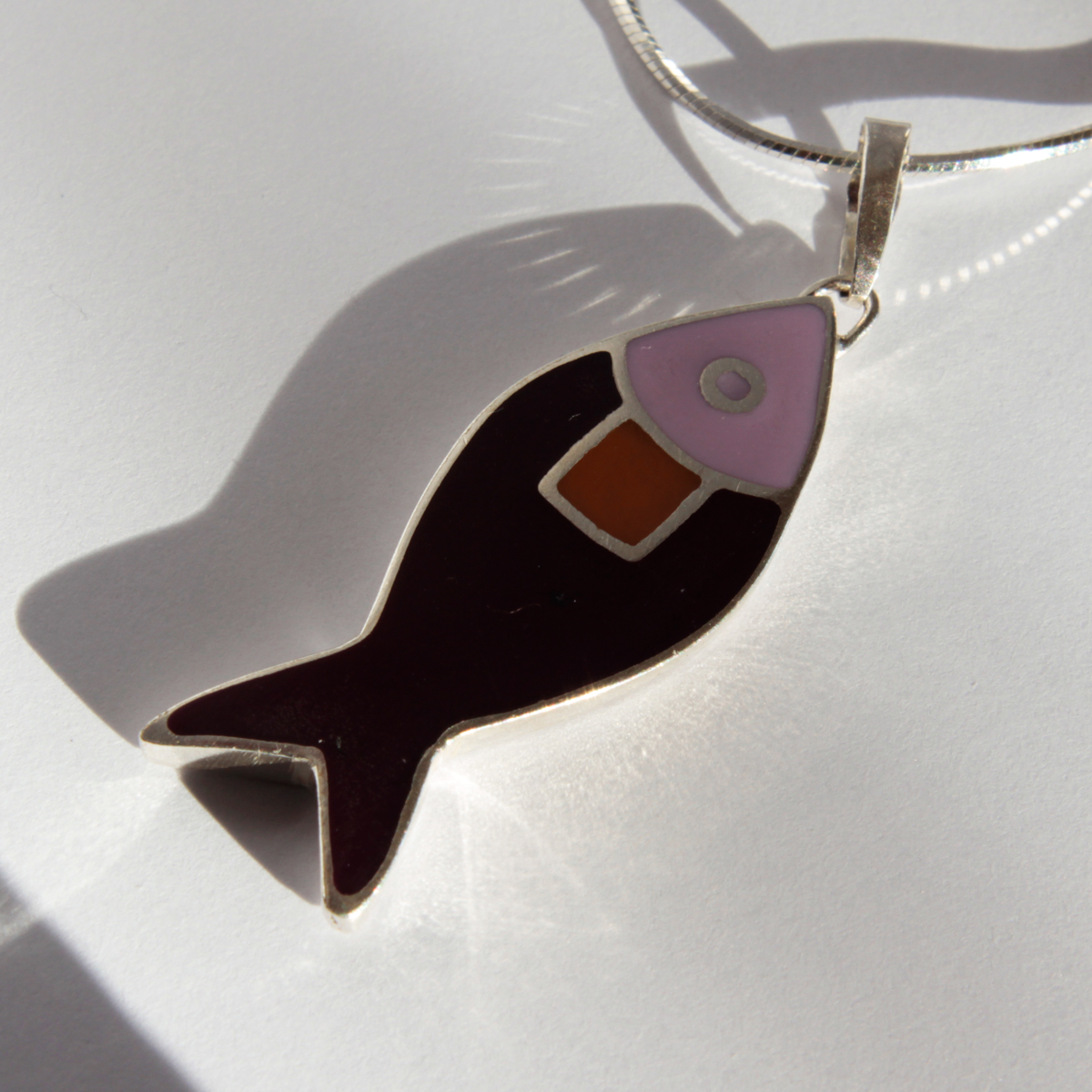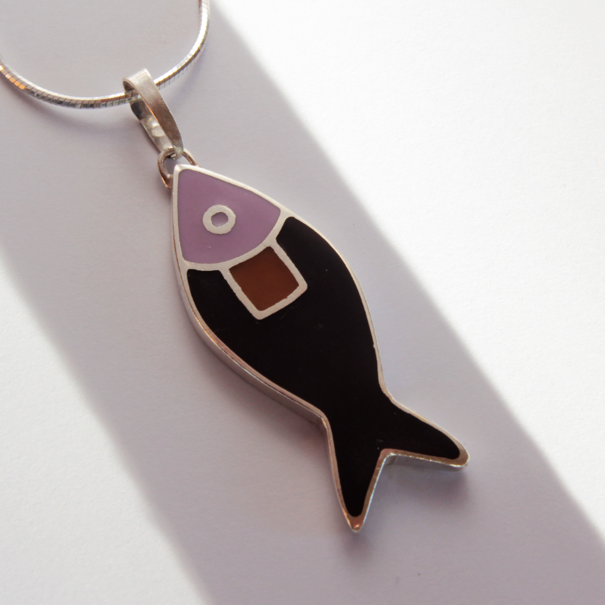 Sötét- és világoslila színű, formás halmedál ezüstből.